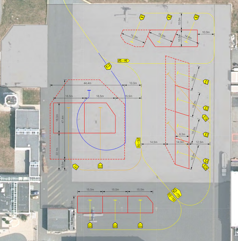 - Yellow parking positions: Aircraft classes E, F, I